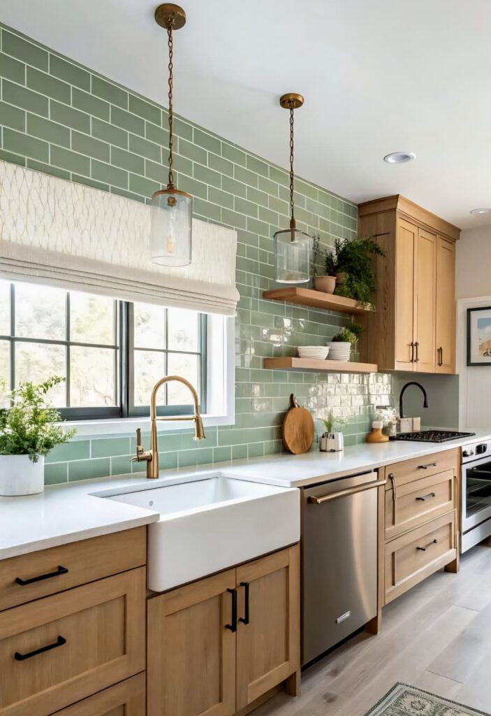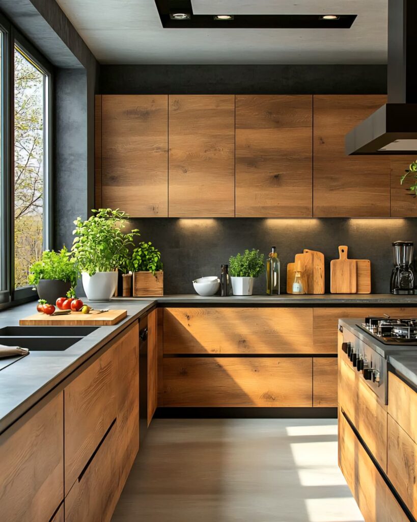 Whether you choose light or dark tones, wood and plants always add warmth. Light wood surfaces create a fresh and bright atmosphere. Darker shades bring depth and character into your home. Combined with greenery, this balance invites nature indoors. This way, you achieve a simple yet captivating kitchen style.