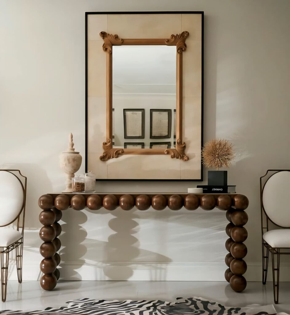 Sculptural legs in modern console table ideas transform simple furniture into art. Inspired by architectural forms, they bring a bold yet refined presence to any room. From tiered conical bases to playful spherical shapes, each piece tells its own story. Merging function with creativity, they create a striking and unique focal point. These designs prove that true style often lives in the details.
