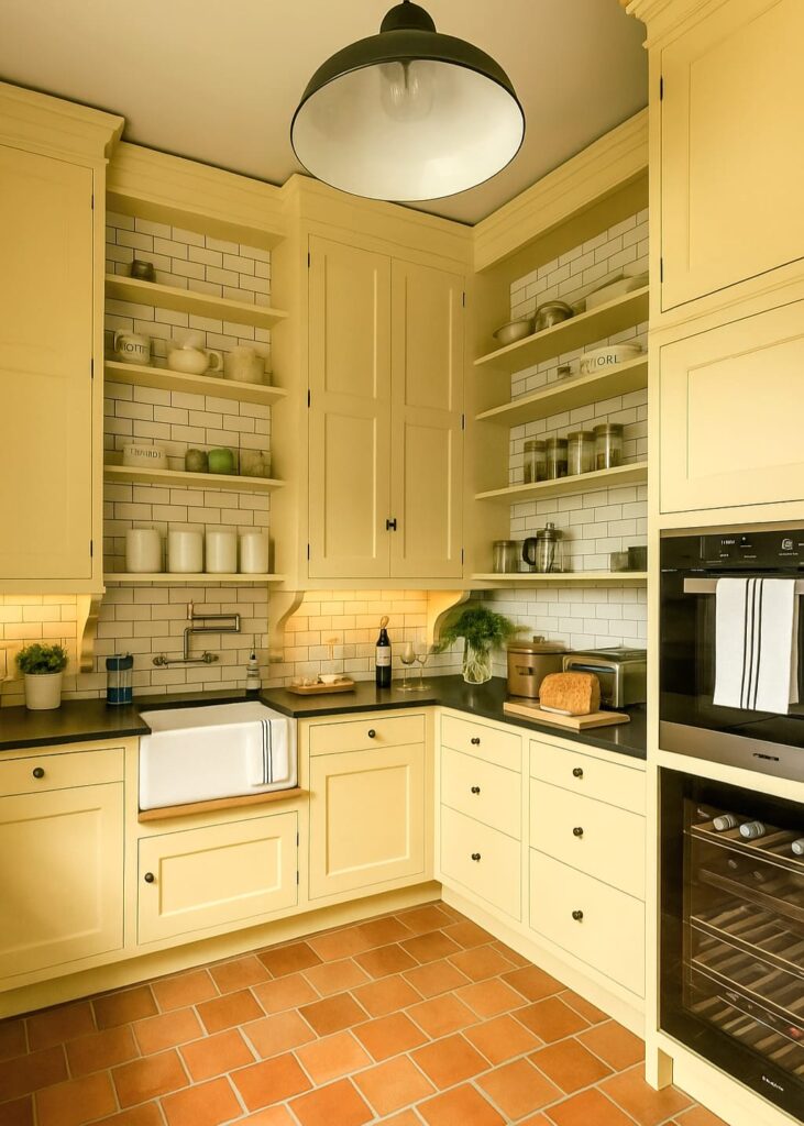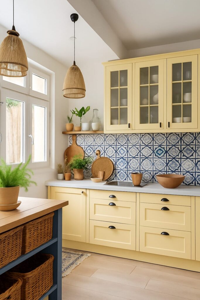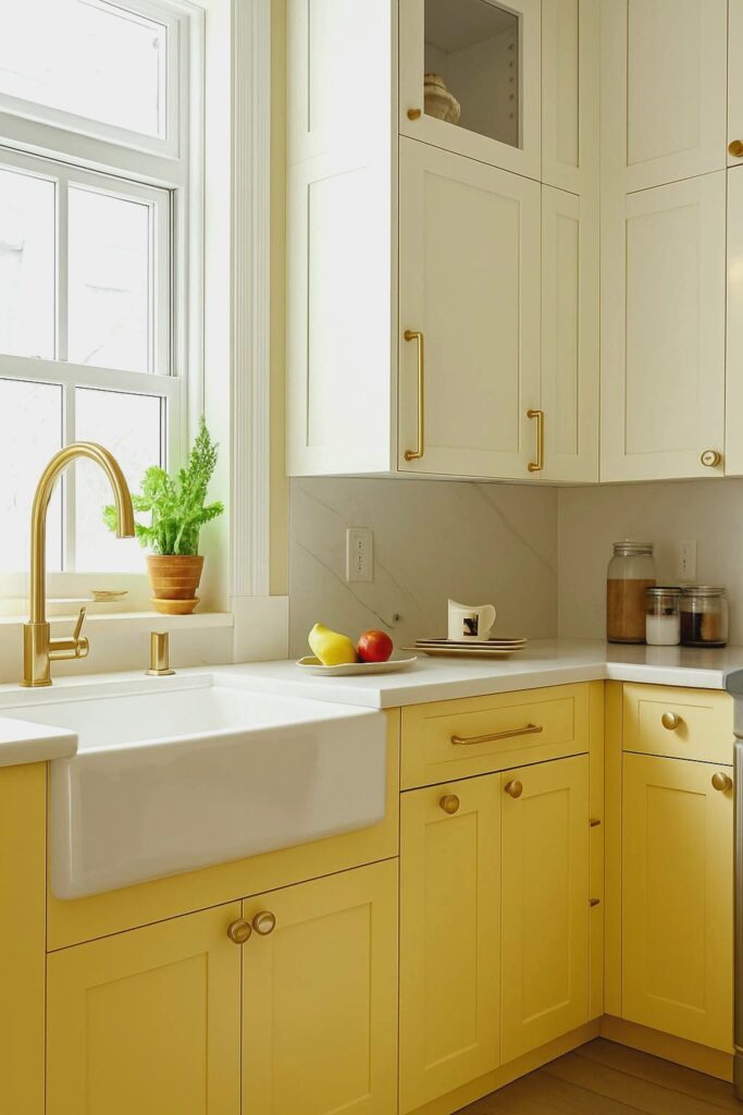 When styling Butter Yellow Cabinets, balance is essential. Consider pairing them with neutral backsplashes like white subway tiles or light grey stone. This combination allows the yellow to stand out without overpowering the room. Additionally, natural textures such as wicker baskets or wooden cutting boards add warmth to the space.