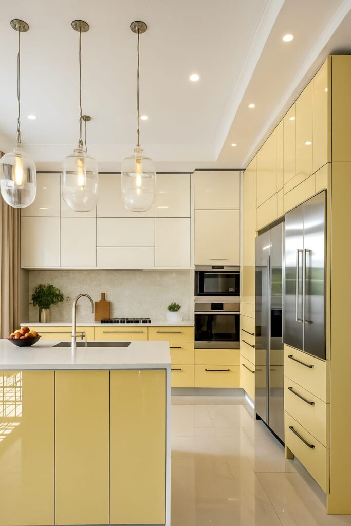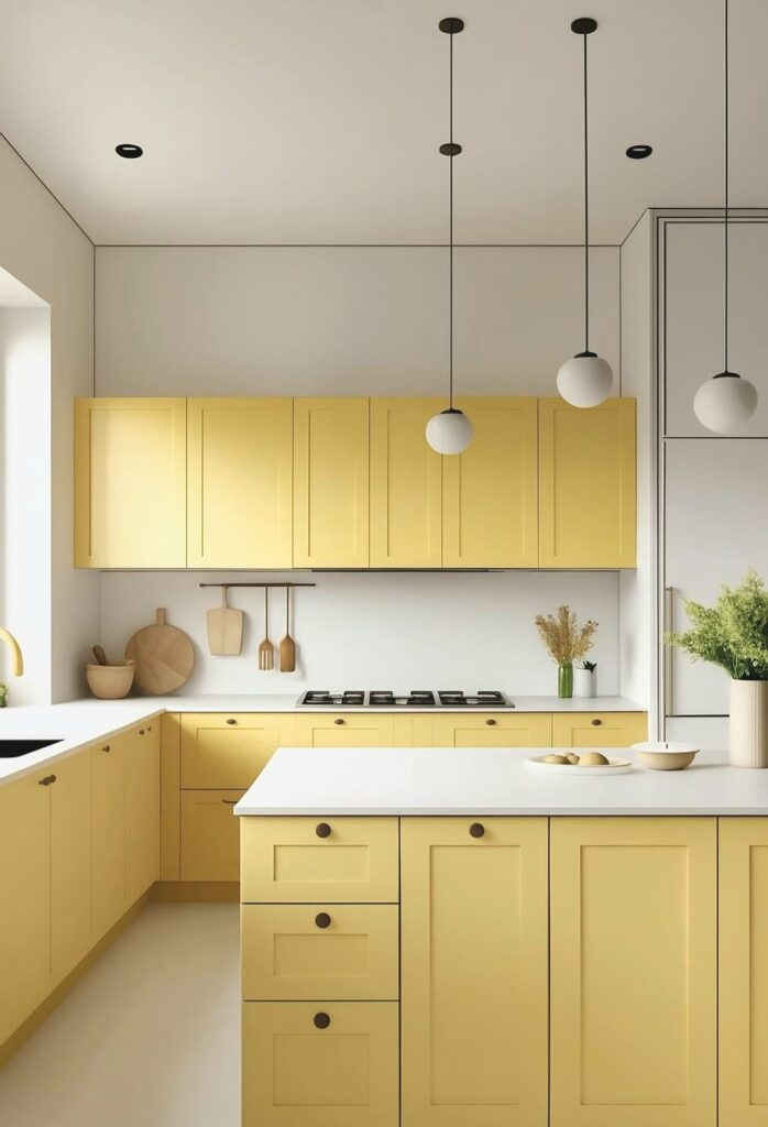 Butter Yellow Cabinets bring warmth and charm to any kitchen. They pair beautifully with both modern and country-inspired designs. Moreover, this soft pastel tone creates a bright and inviting atmosphere. As the trend color of 2025, butter yellow is an ideal choice not only for kitchens but also for various home design elements, from living room accents to bedroom details. As a result, your space feels stylish, fresh, and timeless. Above all, butter yellow kitchens make every meal feel more enjoyable.