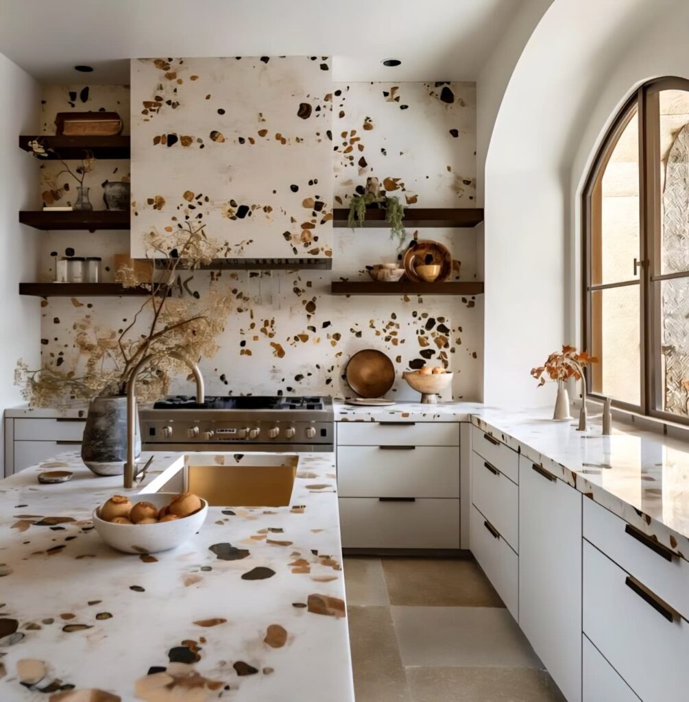 Color and contrast also define the visual impact. Dark cabinets enhance bright or patterned surfaces. Light backgrounds support deep or dramatic tones. Therefore, the balance between these opposites creates rhythm. The kitchen feels dynamic yet harmonious.