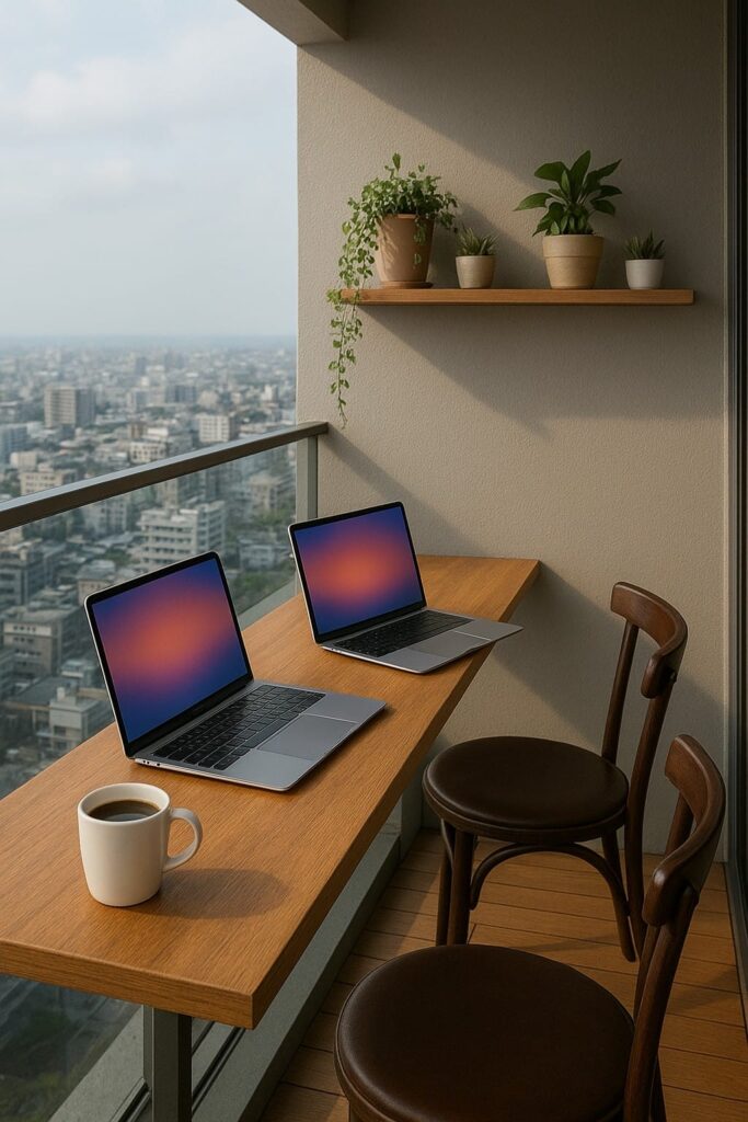 Balconies can be used not only for relaxation but also for creative activities. For instance, you can write in your journal, sketch, or work on small DIY projects. The table offers a surface to explore creativity while enjoying fresh air.